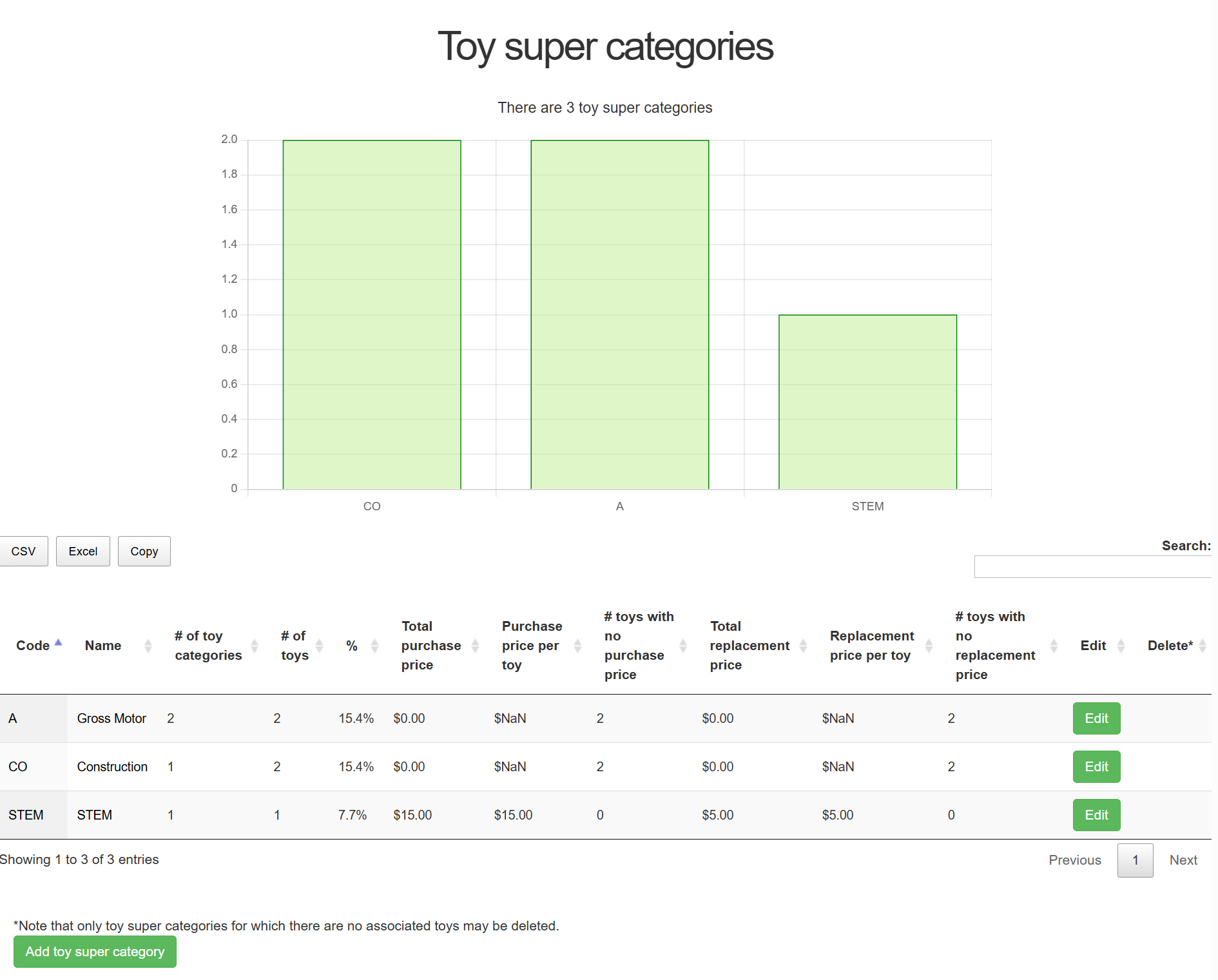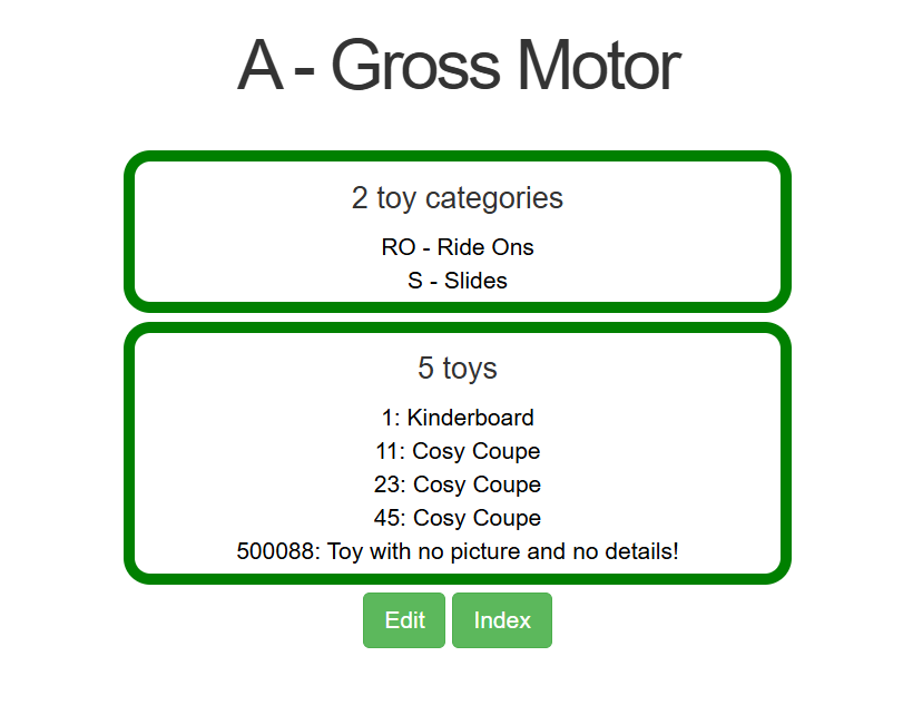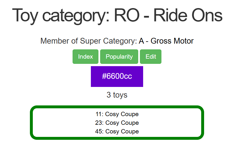 Viewing a Super Category will show all Categories associated with that Super Category, and all the toys within those Categories.